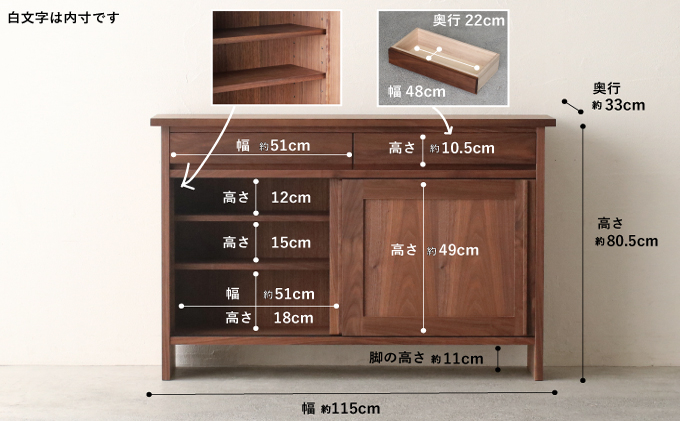 - 棚 収納 キャビネット サイド ボード 木製 無垢 ウォールナット 秋山木工 家具 シンプル ナチュラル おしゃれ 国産 リビング キッチン 藤枝家具 木材 木工 雑貨 インテリア 静岡県 藤枝市