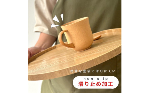 滑り止め加工 木製 半月盆 【白木・1枚単品】 トレー 36cm お盆 ノンスリップ トレイ すべらない 和食 料亭 旅館 便利