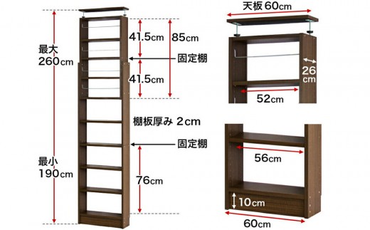 - 突っ張り耐震本棚 幅60 奥行26 高さ190~260