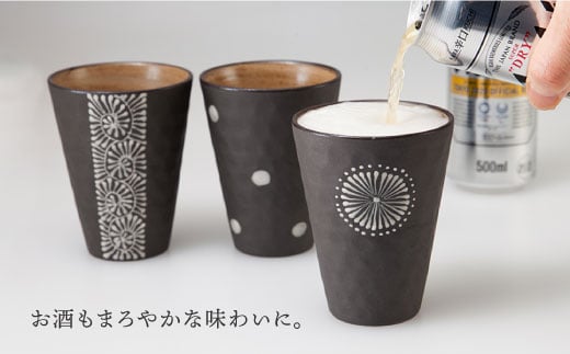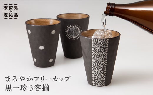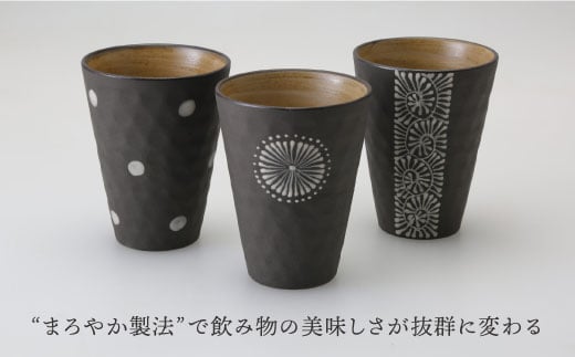 - 【波佐見焼】まろやか フリー カップ 黒一珍3客揃 食器 皿 【國右エ門窯】 [VB10]