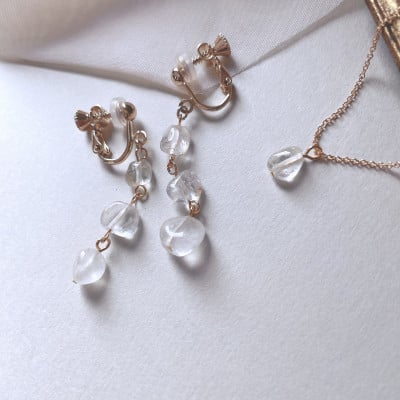 - ハンドメイド誕生石のイヤリング&ネックレス(トパーズ) おまかせデザイン2点SET
