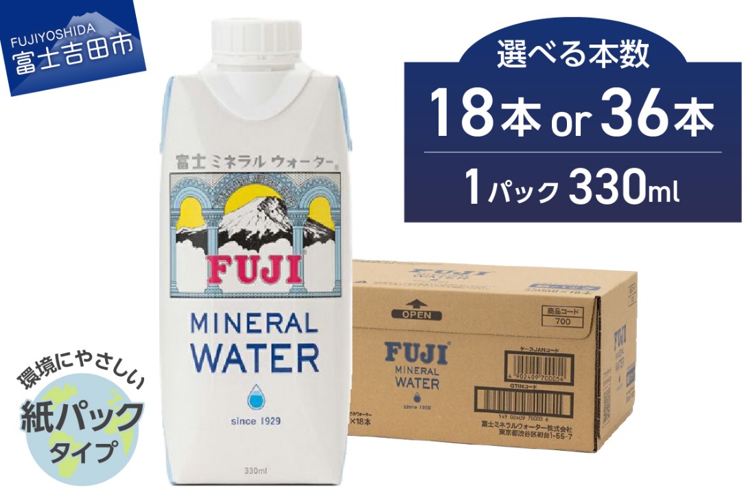 富士ミネラルウォーター 紙パック 330ml【18本入/36本入】 非常用 防災 防災グッズ 保存 ストック 備蓄 山梨 富士吉田