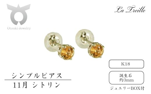 シンプルピアス K18【11月:シトリン】