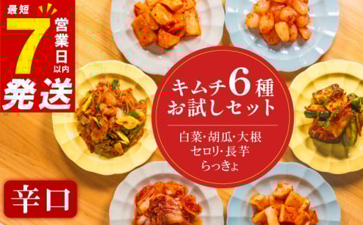 辛口 キムチ 6種 詰め合わせ 食べ比べ 小分け 白菜 長芋 胡瓜 大根 セロリ らっきょ アソート バラエティーセット ごはんのお供 ピリ辛 お米 ごはん ビール 酒 おつまみ 漬物 北海道 昆布 国産 りんご 桃 果物 魚 海鮮 野菜 BBQ 焼肉 惣菜 キムチ鍋 キムチチャーハン お試し 大阪府 松原市