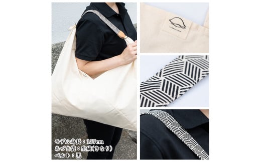 あづま袋【芥子(からし)】と漆プリントベルト【黒】セット【A-1536jH】