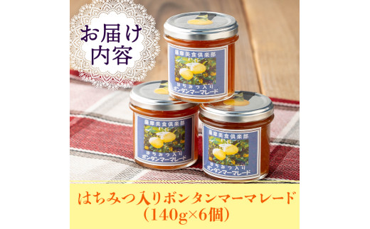 - isa545 《数量限定》手作りはちみつ入りボンタンマーマレード(計6個・各140g) ふるさと納税 伊佐市 特産品 加工食品 果物 フルーツ 詰め合わせ 果肉 柑橘 低糖 ハンドメイド ジャム ギフト 【薩摩美食倶楽部】