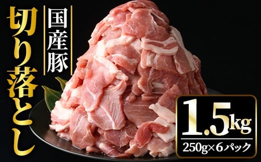 国産豚切り落としこま切れ冷凍1.5kg(250gx6パック)