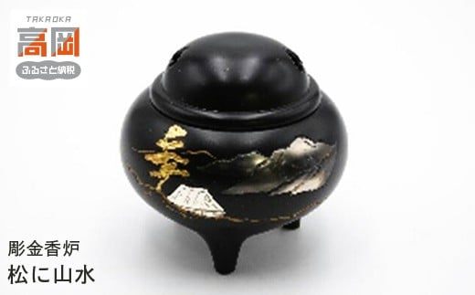 - 【高岡銅器】彫金香炉 松に山水[№5616-1103]