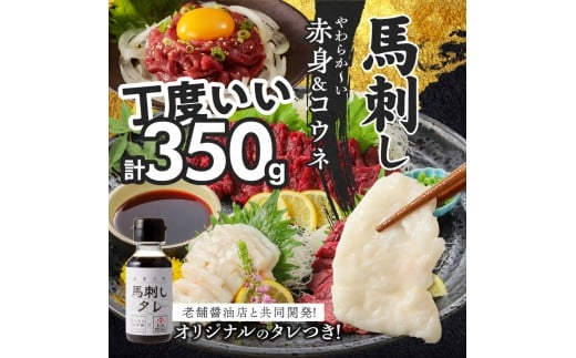 - 【年内発送】【馬刺し】 新鮮こだわり国産馬刺しセット【馬刺しタレ付き】福岡県産《馬刺し(赤身)・コウネ》 (赤身100g×3P・コウネ50g)_国産馬刺しセット 国産 馬刺し 赤身 100g × 3袋 コウネ 50g 計 350g タレ付き 生食用 希少部位 たてがみ プリッと食感 お酒のおとも 真空包装 肉 馬肉 福岡県産 久留米市 冷凍 食べ比べ ヘルシー お取り寄せ _Ah010