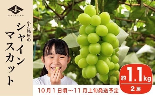 シャインマスカット 約1.1kg 2房 [小布施屋] フルーツ 果物 くだもの ぶどう 葡萄 ブドウ 数量限定 クール便配送 長野県産 産地直送 先行予約 送料無料 2025 2025年発送 令和7年産 【2025年10月1日頃~11月上旬発送】[A-8b]