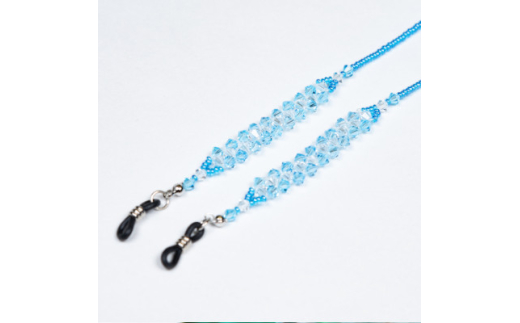 - いずみガラスを使用したハンドメイドのメガネチェーン(青色)AN175【1565052】
