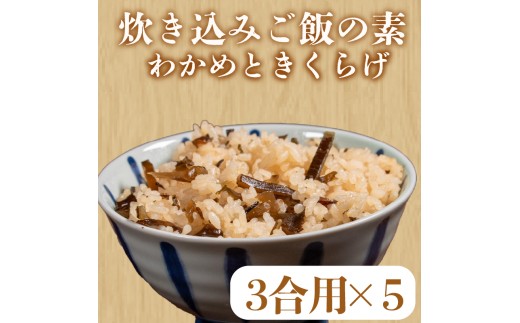 訳あり 炊き込みご飯 の素 わかめときくらげ 3合用×5袋 昆布 こんぶ 海藻 木耳 おにぎり 米 魚介 貝 手軽 調理 時短 具だくさん お弁当 ごはんのお供 ご飯 お米 ごはん 出汁 簡易包装 大阪府 松原市