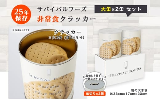 - 賞味期限25年 非常食 クラッカー 大缶2缶 セット 約20食分 缶切り付 サバイバルフーズ 災害対策 備蓄 保存食 長期保存 防災食 常温保存 非常用食品 災害食 防災グッズ 国内製造 簡単 おいしい コンパクト 送料無料 セイエンタプライズ 愛知県 あま市