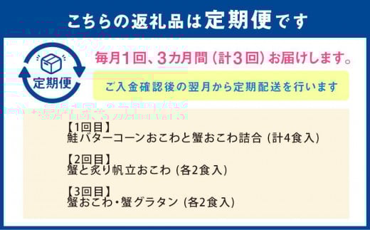 定期便3コースB(鮭バターコーンおこわ・蟹おこわ・帆立おこわ・蟹グラタン)