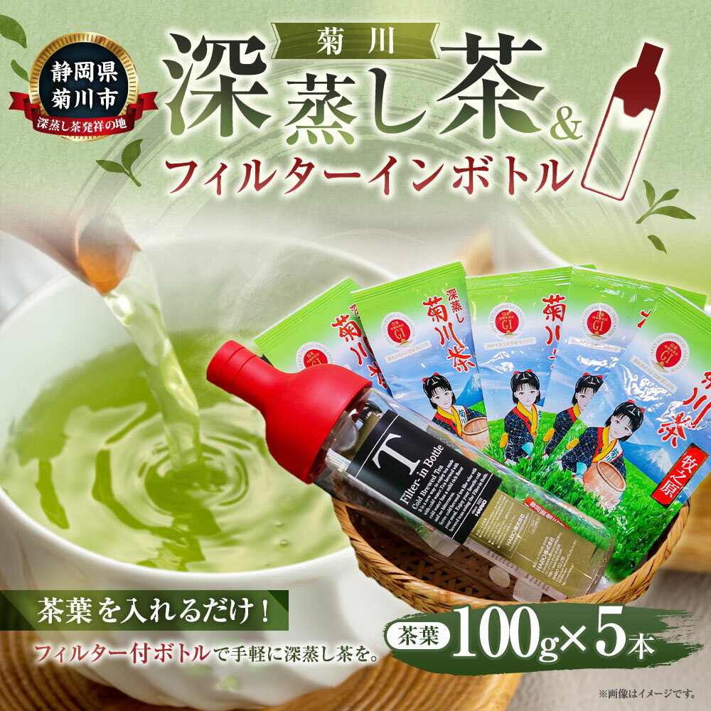 - 【ふるさと納税】菊川深蒸し茶 と フィルターインボトル セット 100g×5本 計500g 深蒸し茶 深蒸し 煎茶牧之原 煎茶 お茶 日本茶 緑茶 茶 ボトル付き フィルター付きボトル 静岡県産 静岡県 菊川市 送料無料