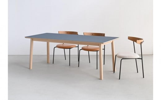 - ダイニングテーブル BREAD 150×75 リノリウム スモーキーブルー オーク無垢 大川家具 辻製作所