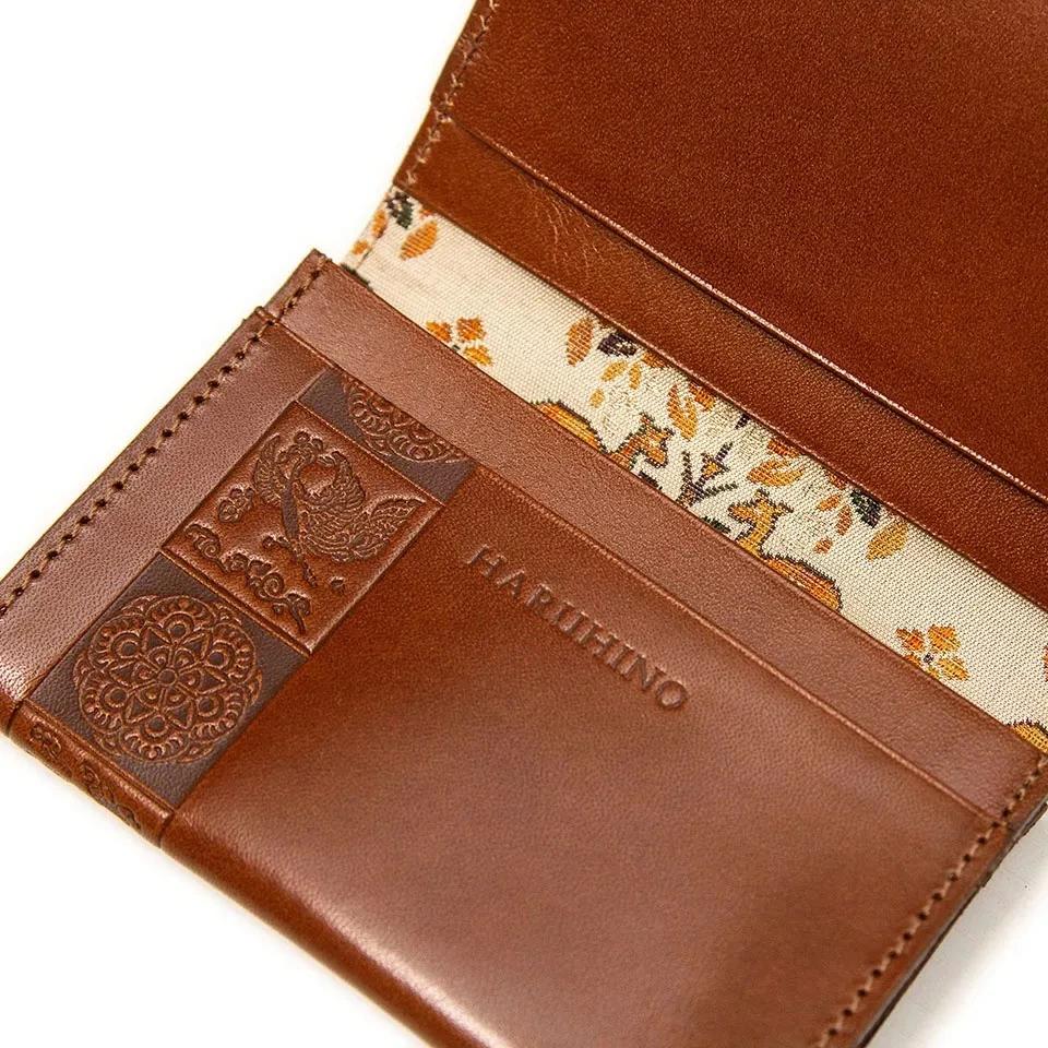 - 『正倉院文様本革名刺入れ 文様2』 日本製 本革 名刺入れ カードケース レザー ヌメ革 一枚革 おしゃれ シンプル レディース メンズ プレゼント ギフト 正倉院文様 西陣織 茶 ブラウン 紺 ネイビー 黒 ブラック キャメル 赤 レッド (HARUHINO) 奈良県 奈良市 なら 33-003