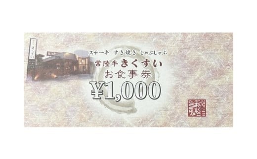 - 焼肉・すきやき・しゃぶしゃぶ『常陸牛きくすい』食事券3,000円分【お食事券 常陸牛 ステーキ 焼肉 すき焼き ハンバーグ 茨城県 水戸市 水戸 10000円以内 1万円以内】(BG-24)