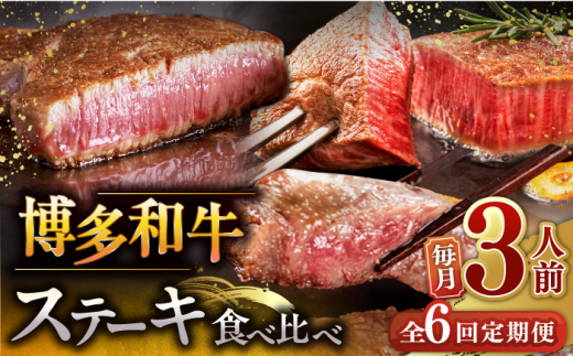 【全6回定期便】博多和牛 食べ比べ ステーキ 定期便 ( サーロイン / ヒレ / シャトーブリアン ) 毎月200g×3枚 お届け!▼ 牛肉 肉 にく 希少部位 希少肉 レア ステーキ セット 高級 和牛 記念日 定期便 食べくらべ 桂川町/久田精肉店 [ADBM143]