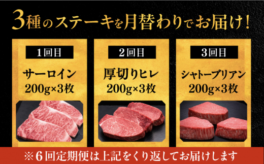 - 【全6回定期便】博多和牛 食べ比べ ステーキ 定期便 ( サーロイン / ヒレ / シャトーブリアン ) 毎月200g×3枚 お届け!▼ 牛肉 肉 にく 希少部位 希少肉 レア ステーキ セット 高級 和牛 記念日 定期便 食べくらべ 桂川町/久田精肉店 [ADBM143]
