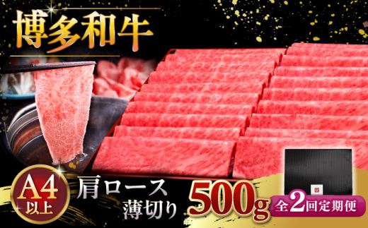 【全2回定期便】A4ランク以上 博多和牛 肩ロース薄切り 500g ▼ 牛肉 肉 にく ロース スライス 国産 牛 すき焼き しゃぶしゃぶ A4 A5 定期便 桂川町/久田精肉店 [ADBM133]
