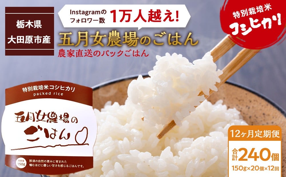 - 【12か月定期便】農家直送のパックごはん☆五月女農場のごはん(150g×20個)