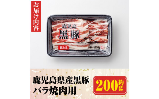 - P03002 南州農場 黒豚バラ焼肉用(約200g) 鹿児島 国産 九州産 豚肉 黒豚 南州黒豚 豚バラ バラ肉 やきにく 焼肉 BBQ 冷凍 【南州農場(株)高山ミートセンター】