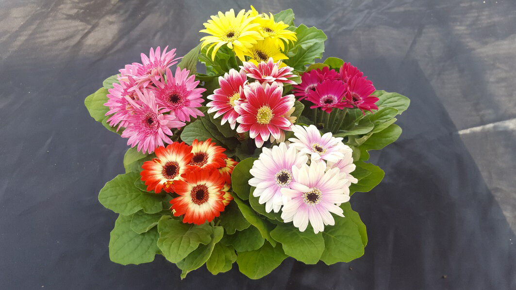 【ふるさと納税】ミニガーベラナカノセレクション3号(9cm)ポット6個(ビビット系ミックス)
