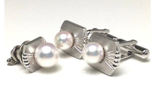 - 真珠 アクセサリー シルバー タイタック カフス セット パール 9ミリ / 7.5ミリ ネクタイ スーツ メンズ アコヤ真珠 伊勢 志摩 伊勢志摩 冠婚葬祭 慶事 弔事 結婚式 入学式 卒業式 ギフト フォーマル / 老舗の真珠専門店・花珠級アコヤ真珠 紳士用パールタイタックセット9.0ミリ/7.5ミリ(タイプ:B)