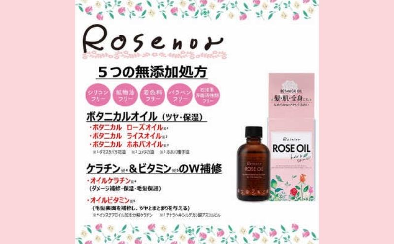 - 黒ばら本舗 ロゼノア ローズオイル&ヘアミルク ヘアケア スキンケア 美容 ローズオイル ヘアミルク しっとり うるおい ツヤ髪 うねり抑制 まとまる髪 ローズ 墨田区 東京都