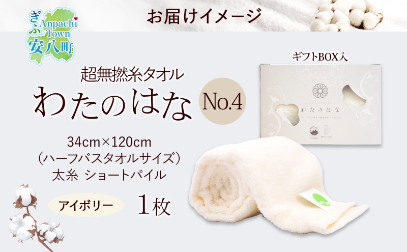 - 超無撚糸 タオル わたのはな No.4 美雲 アイボリー 約34×120cm 八分咲き 太糸 ショートパイル むねんし 雑貨 日用品 パイル 綿100% 柔らか 軽い ボリューム 吸水 風合い ハーフバスタオル プレゼント ギフト 贈り物 浅野撚糸 送料無料 岐阜県 安八町