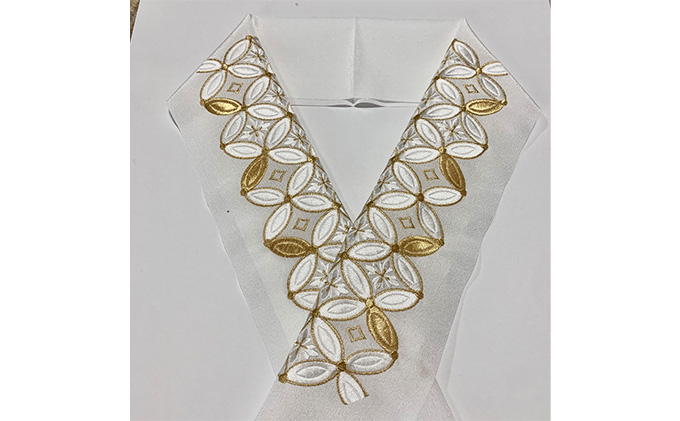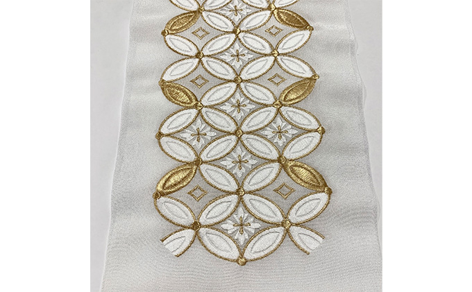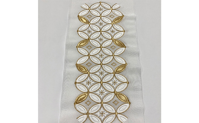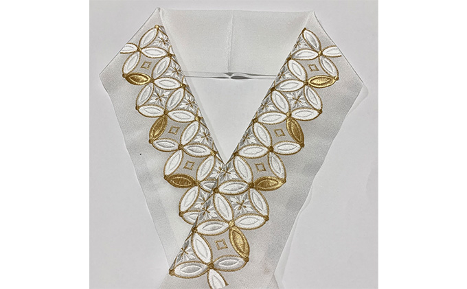 半衿 白地に白とゴールドの七宝繋ぎ柄 刺繍 [№5275-0322]