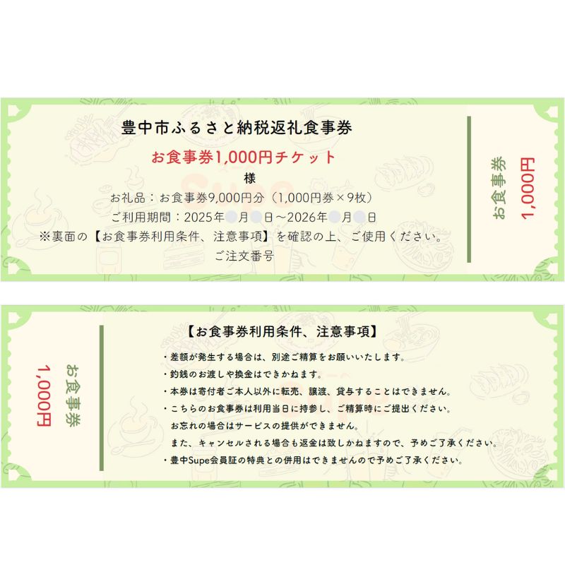 - 【ふるさと納税】豊中飲食チケット! 9,000円分(1,000円券×9枚)