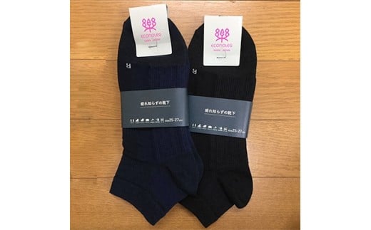 - 疲れしらずのくつした(ショート丈)ネイビーとブラックの2足セット 27-29cm【1087656】