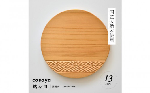 紗綾形の彫刻が美しい『cosaya』ブランドの木製銘々皿シリーズ 木製 丸皿(13cm) A柄
