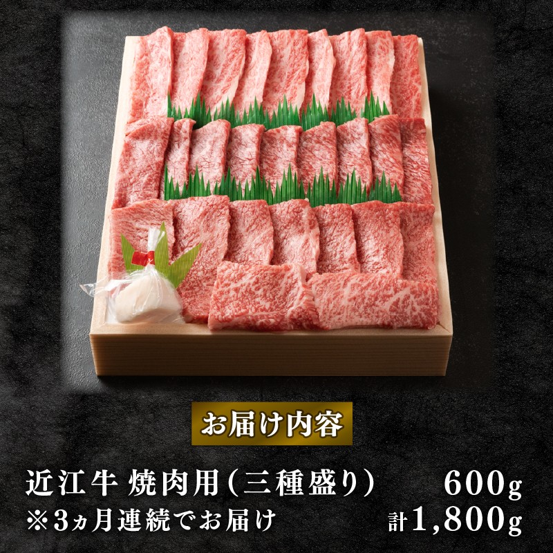 - 定期便 3回 近江牛 焼肉 特選 三種 盛り合わせ 600g × 3ヶ月 1,800g (定期便 3ヶ月 牛肉 肉 国産 ブランド牛 日本三大和牛 和牛 黒毛和牛 バーベキュー BBQ 竜王産 産地直送 澤井牧場 滋賀県 竜王町 送料無料 ギフト プレゼント 贈り物 冷凍 )