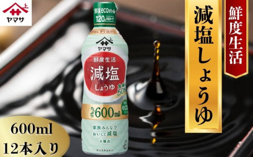 - ヤマサ減塩しょうゆ 12本(1本600ml) しょうゆ 醤油 しょう油 調味料 家庭用 鮮度生活 減塩 おかず 料理 グルメ お刺身 お寿司 冷奴 焼き魚 老舗 リピート 人気 おすすめ 贈答 ギフト 贈物 贈り物 送料無料 ヤマサ ヤマサ醤油 生しょうゆ 生醤油 麹 麹醤油 熟成 国産 千葉県 銚子市 大豆 櫻井謙二商店