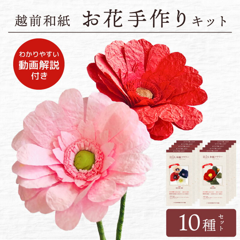 - 【ふるさと納税】越前和紙 お花 手作りキット 10種セット(バラ カーネーション ガーベラ 他7種)【造花 卓上 インテリア ハンドメイド おうち時間 プレゼント】 [e51-c001]