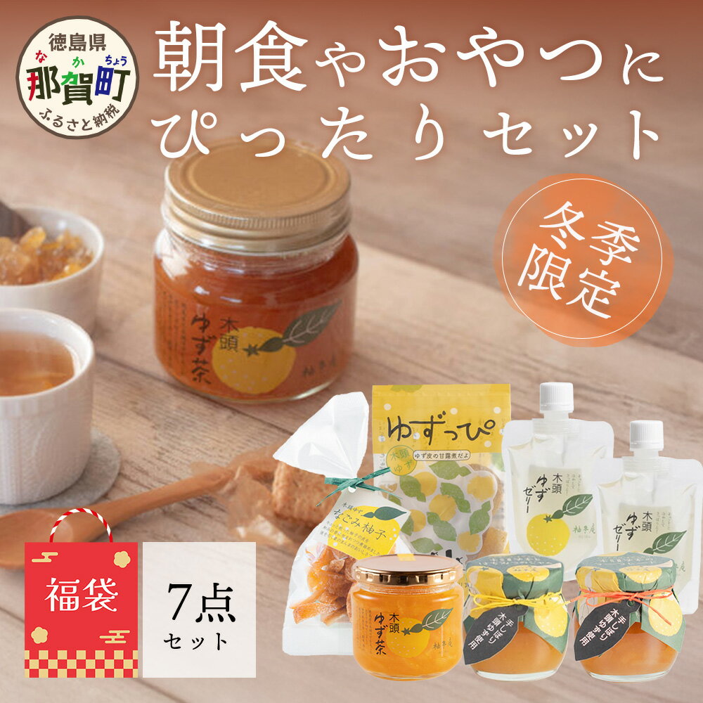【ふるさと納税】【福袋】朝食やおやつにぴったりセット【冬季限定】【徳島 那賀町 木頭柚子 ゆず ユズ 柚子 ジャム マーマレード ゼリー 甘露煮 ピール ゆず茶 柚子茶 朝食 おやつ お菓子 手作り 詰め合せ 6種7点 福袋 柚冬庵】YA-62
