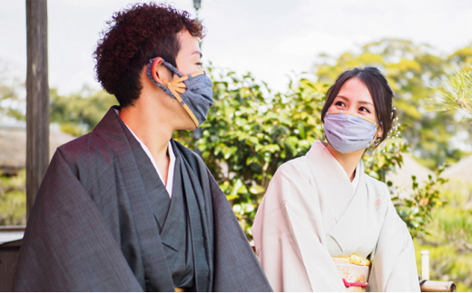 和装用マスクカバー「扇小町」紫色 Mサイズ(男性用)[№5748-7034]0306