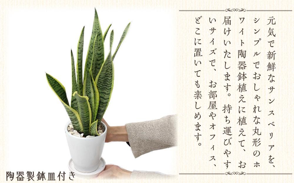 サンスベリア 5号 ホワイト陶器鉢 丸ロング 高さ:約35cm~50cm内外(鉢底より) 【観葉植物 植物 サンスベリア 5号 鉢付 インテリア 部屋 室内 オフィス 癒し エコ グリーン マイナスイオン リラックス オシャレ おしゃれ ギフト プレゼント 贈り物 人気 おすすめ 福岡県筑前町 送料無料 AG003】