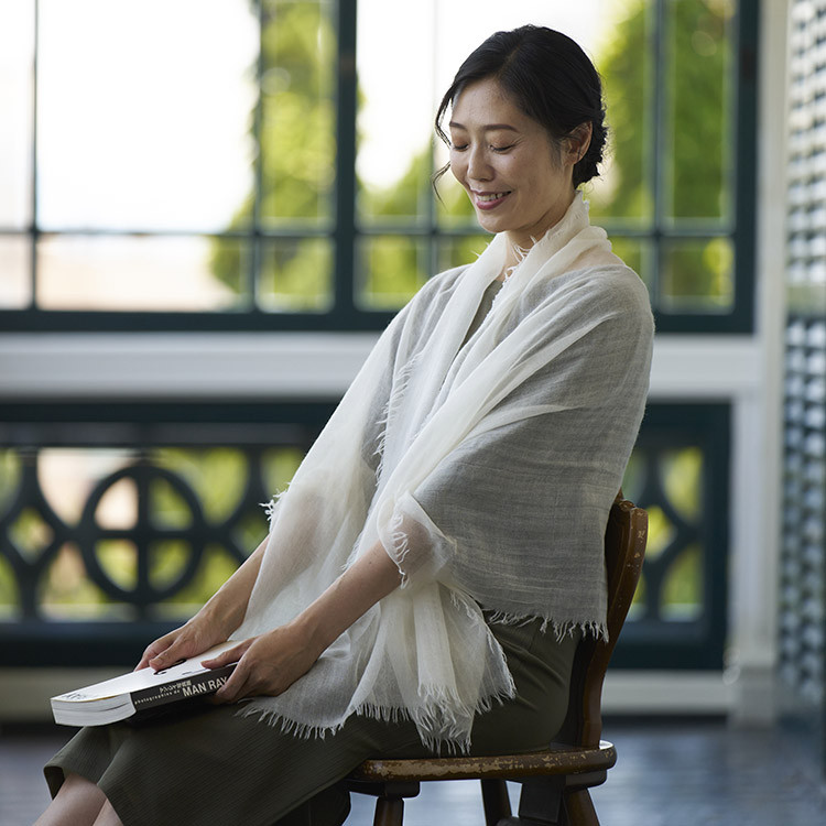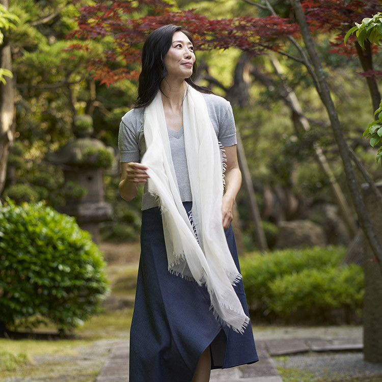 - しあわせな気持ちになれるカシミヤストール(無染色) 白生成り [3078]