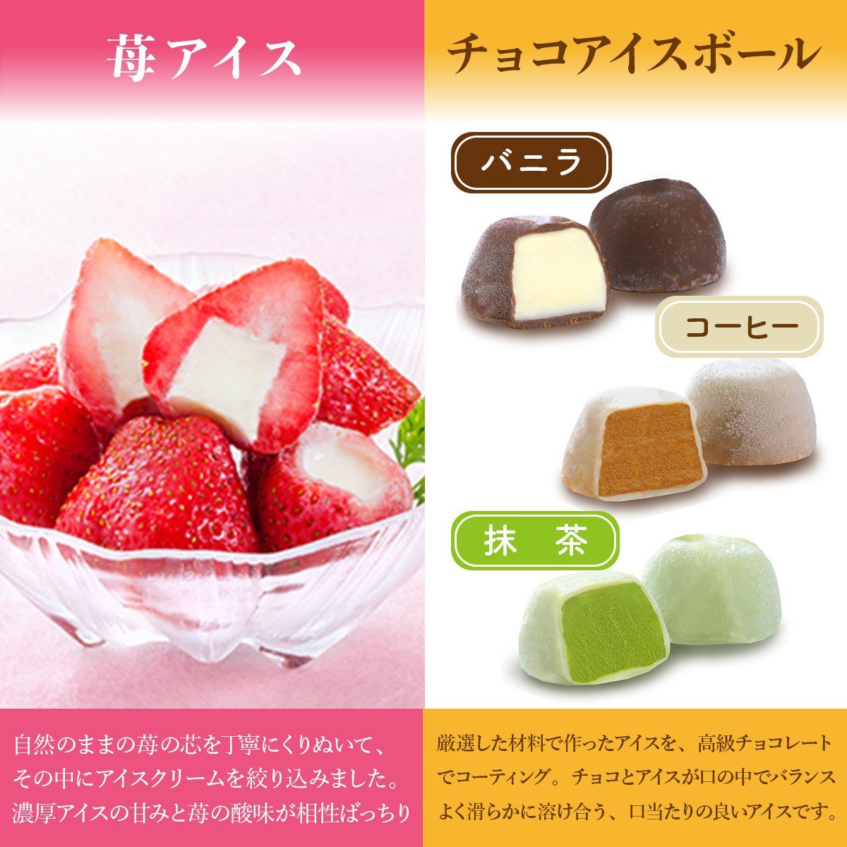 - A014 ひとくちアイス5種セット(33粒) 一口アイス 苺 アイス 生チョコ バニラ コーヒー 抹茶