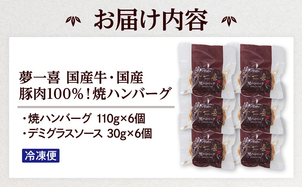 『夢一喜』国産牛・国産豚肉100%!焼ハンバーグ6個(デミグラスソース付)