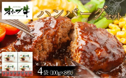 オリーブ牛 ハンバーグ4袋(100g×8枚)セット