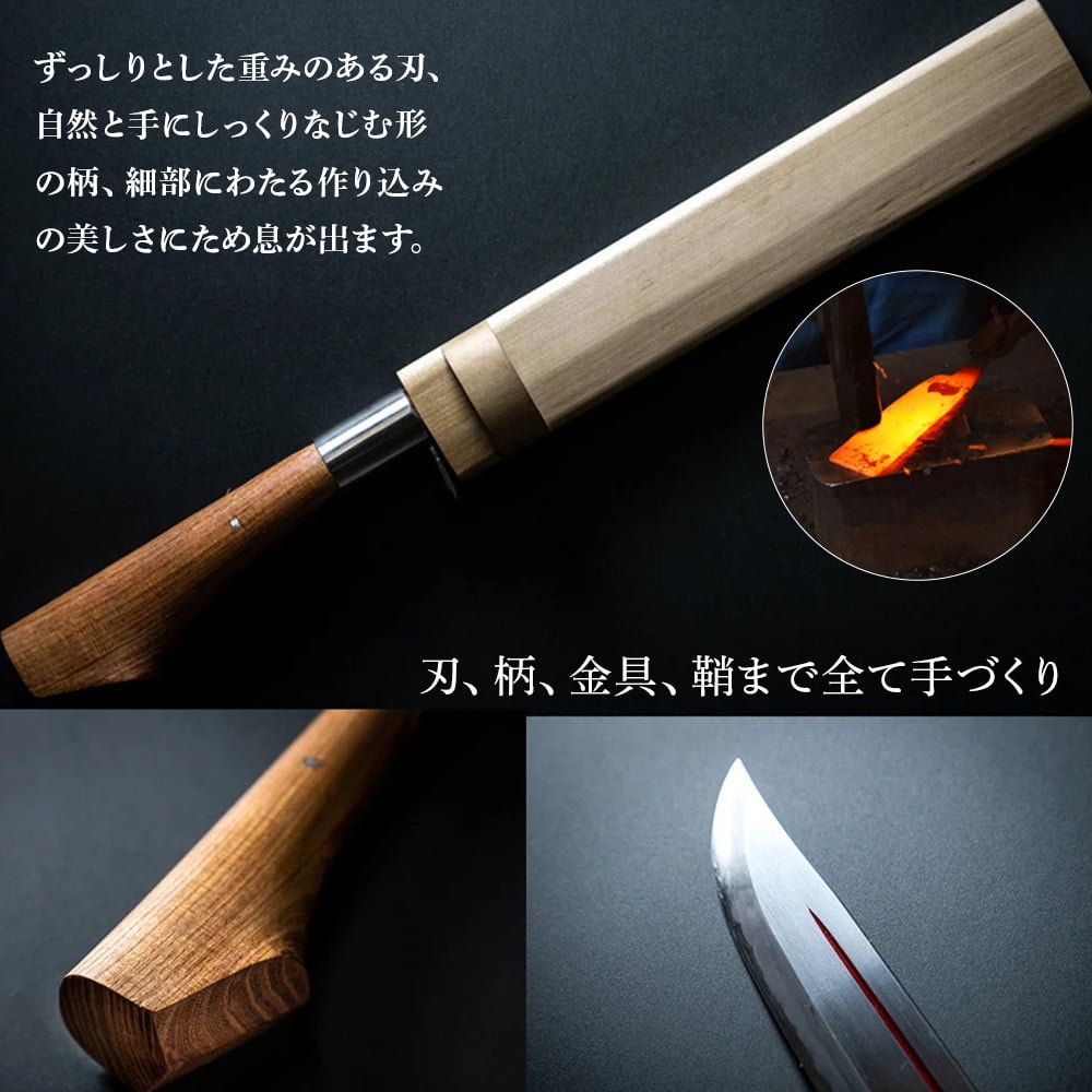 - 【三代目 土州勝秀作】四万十で伝統を受け継ぐ村の鍛冶屋 剣鉈(けんなた)両刃・鞘付 ・5寸、5.5寸、6寸 Pkj-04 /ナタ 勝秀鍛冶屋 山師 猟師 プロ仕様 キャンプ アウトドア 薪割 手作り オーダーメイド カシ ヤマグワ エンジュ 高知 四万十