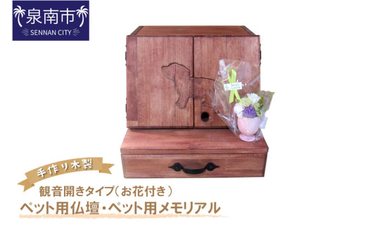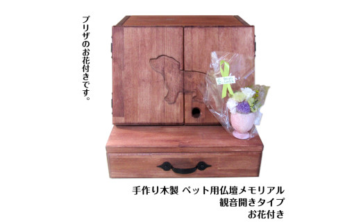 - 手作り木製 ペット用仏壇・ペット用メモリアル 観音開きタイプ(お花付き)【選択カラー:ダークウォルナット】【007A-046】