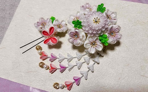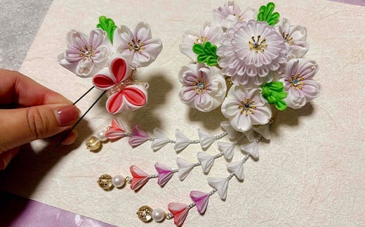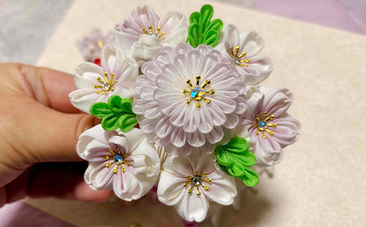 - M551 【つまみ細工の髪飾り 淡桜】つまみ細工 髪飾り 絹100% 成人式 七五三 結婚式 花 水引 絹 寿 淡桜 桜 花 Uピン式 ヘアアクセサリー フラワー ピンク 振袖向け 卒業式 和装 着物 アレンジ自在