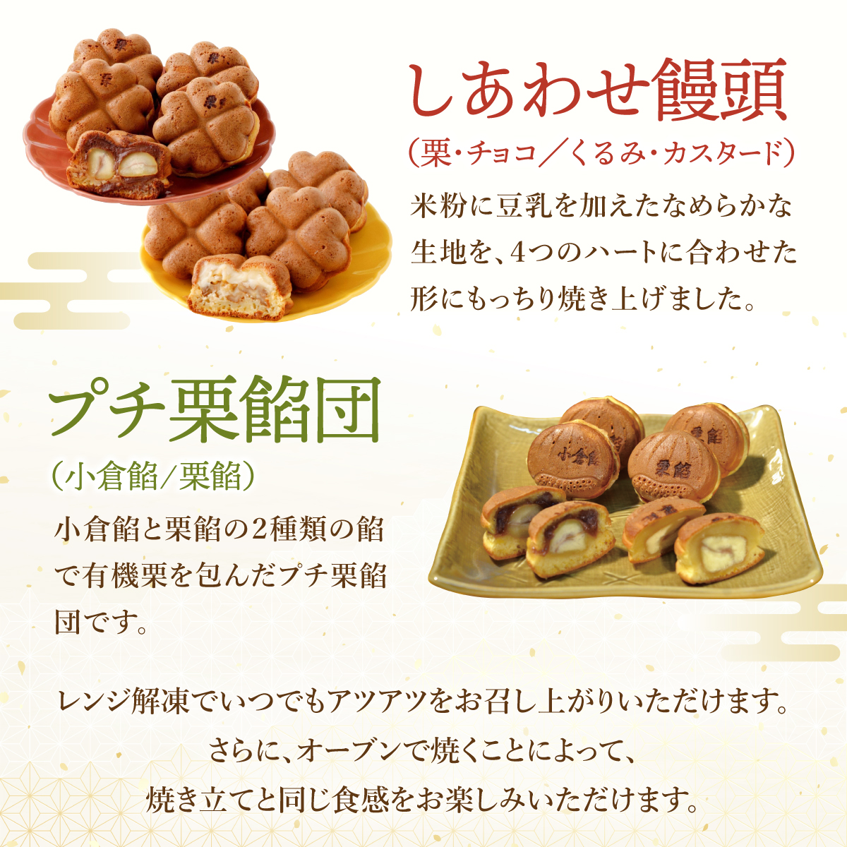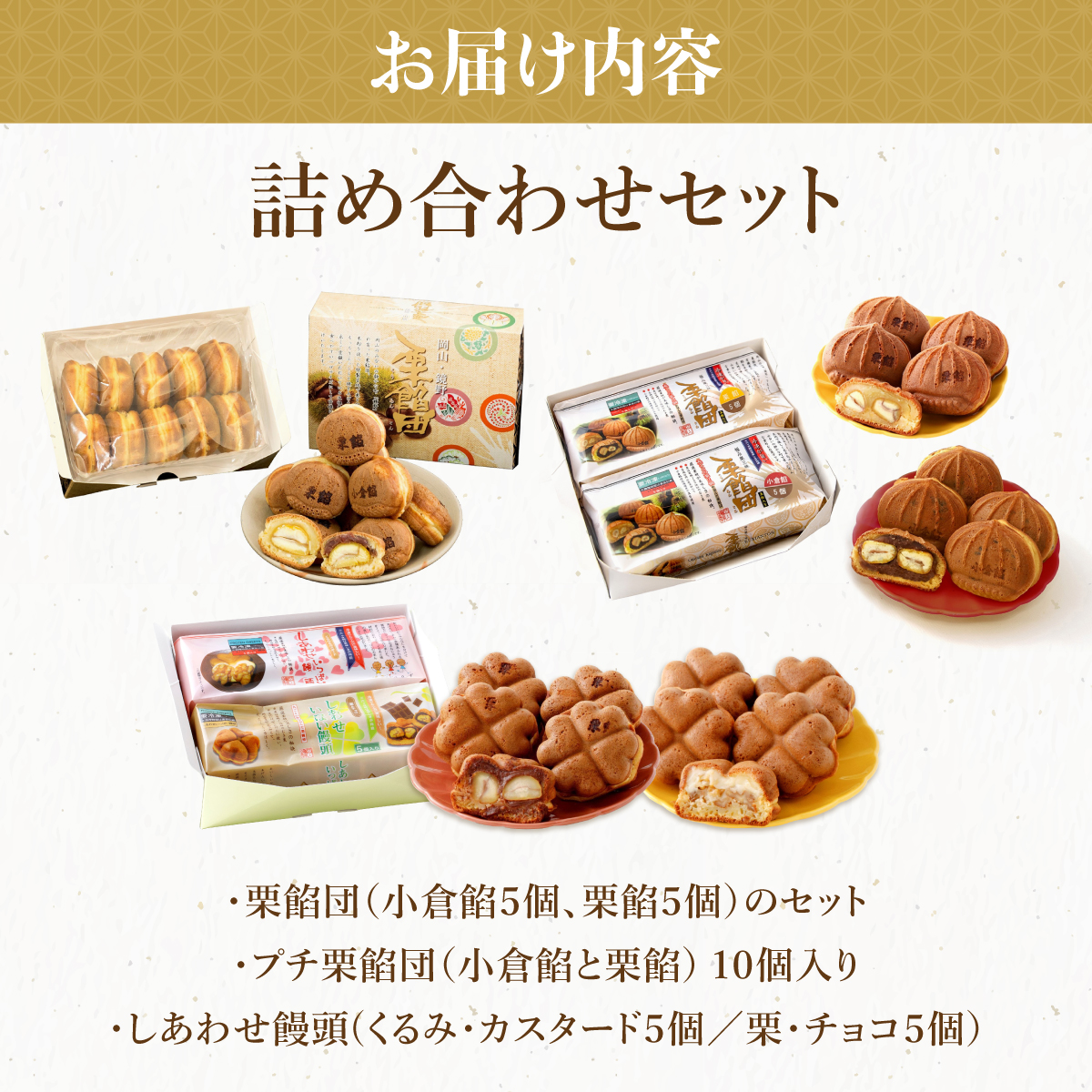 - I-9.栗餡団・2種類セット+しあわせ饅頭・2種類セット+プチ栗餡団10入個箱【010-a020】