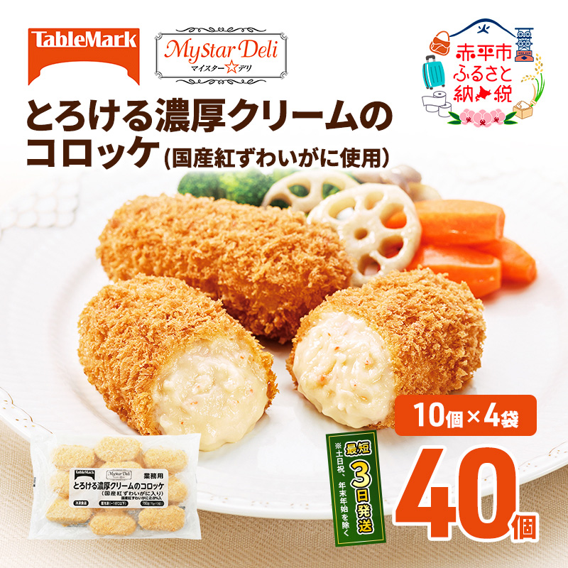 北海道 コロッケ とろける濃厚 クリームコロッケ 計40個 10個 ×4 国産 紅ずわいがに 使用 マイスターデリ 最短3日 7日出荷 冷凍食品 惣菜 弁当 おかず 揚げ物 セット グルメ 大容量 冷凍コロッケ 揚げるだけ 時短